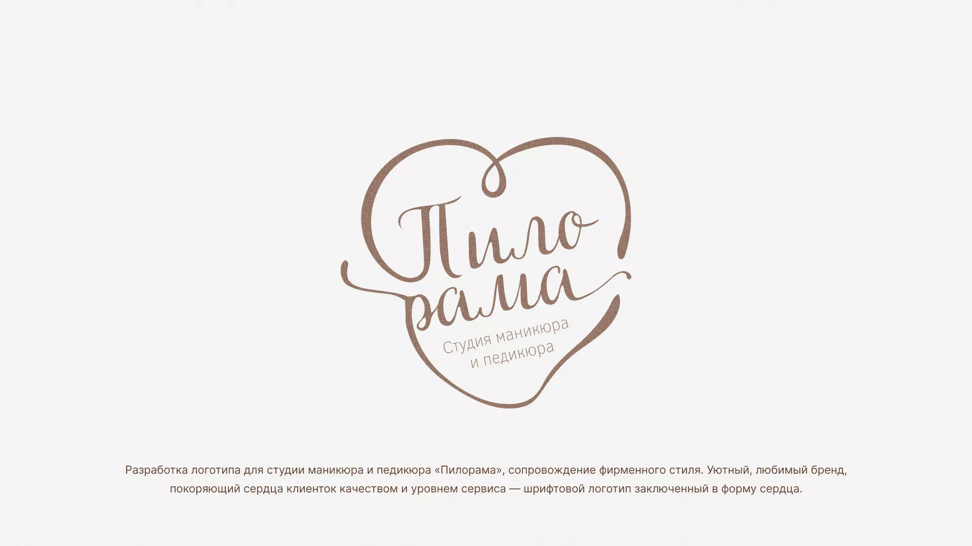 Разработка логотипа в Вятских Полянах для студии маникюра и педикюра «Пилорама», сопровождение фирменного стиля. Уютный, любимый бренд, покоряющий сердца клиенток качеством и уровнем сервиса — шрифтовой логотип заключенный в форму сердца.